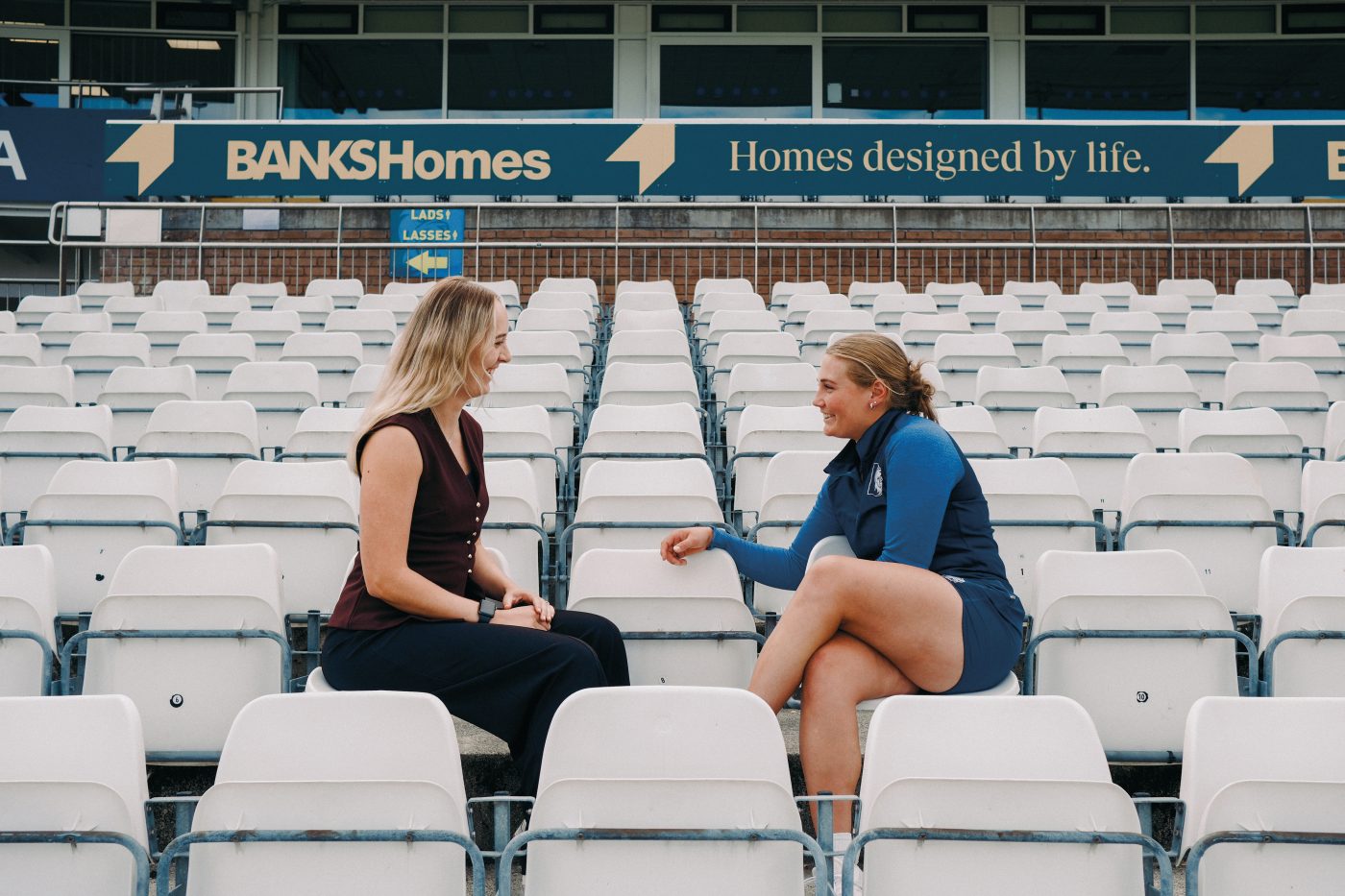 England development contract player Bess has her own long-term business aspirations, as Rebecca discovers when the pair meet ahead of our interview in one of the Banks Homes Riverside boxes.